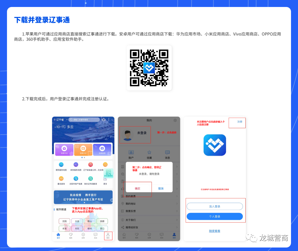 蘋(píng)果手機(jī)進(jìn)入AppStore,搜索“遼事通”直接進(jìn)行下載。安卓用戶可到以下應(yīng)用商店下載:華為應(yīng)用市場(chǎng)、小米應(yīng)用商店、Vivo應(yīng)用商店、OPPO應(yīng)用商店,360手機(jī)助手、應(yīng)用寶軟件助手,直接搜索“遼事通”進(jìn)行下載安裝。用戶也可以掃描下方二維碼,點(diǎn)擊進(jìn)入安裝,選擇在瀏覽器中打開(kāi),然后點(diǎn)擊下載。